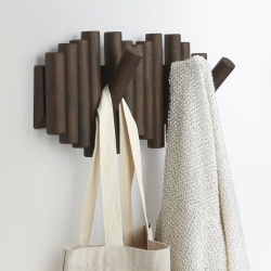 FUZ fandt Knagerække valnød – Picket rail fra Umbra til 316.00 DKK i kategorien Knager og knagerække hos Fenomen. Knagerække i mørk old age valnød – Picket Rail knagerækken fra UMBRA er sammensat af runde træstykker i mørk valnød træ. På knagerækken er der 5 knager integreret i knagerækken, og som kan vippes ned, når der er brug for knagerne. Knagerækken er fremstill